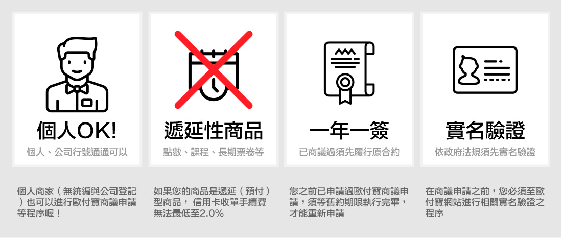 至歐付寶「廠商管理後台」中的「廠商管理」>「合約條件商議申請」>「議定費用」查看相關費率!