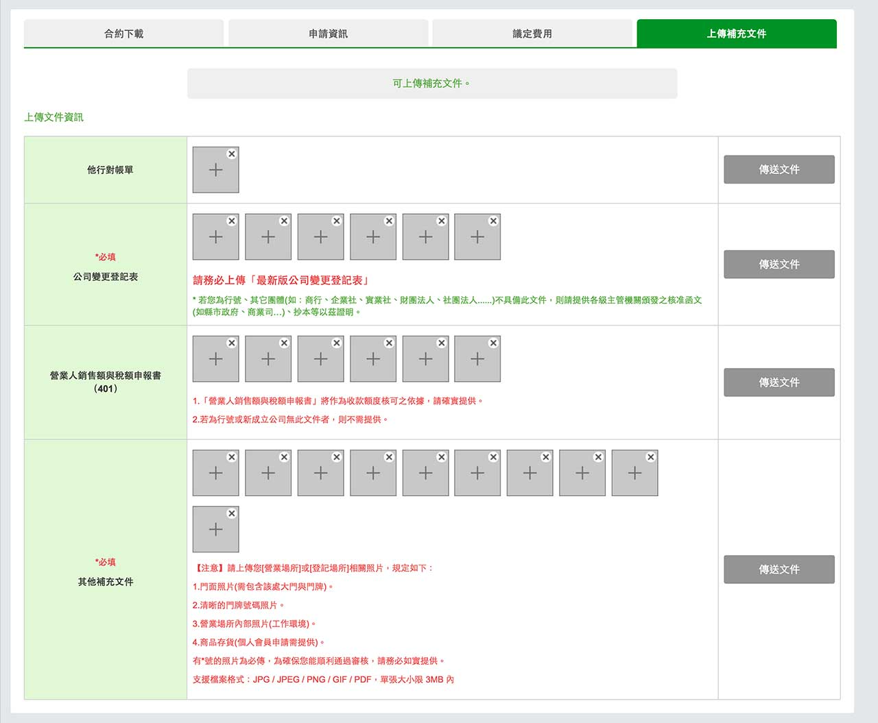 支援檔案格式:JPG / JPEG / PNG / GIF / PDF,單張大小限 3MB 內
