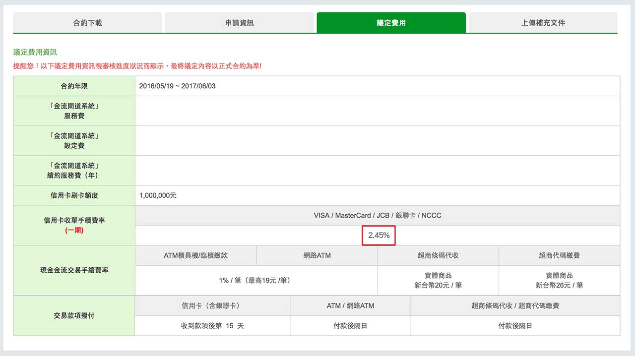 需告知綠界商店上線時間,以確保費率調整確實生效。
