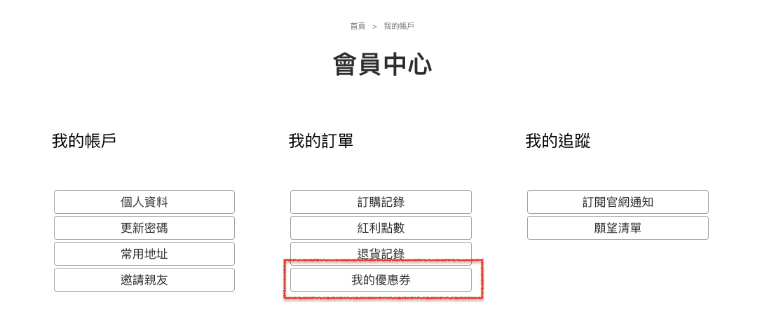 2. 領取歸戶使用(券):優惠券會先進到會員前台帳戶中,下單時可以點取使用。