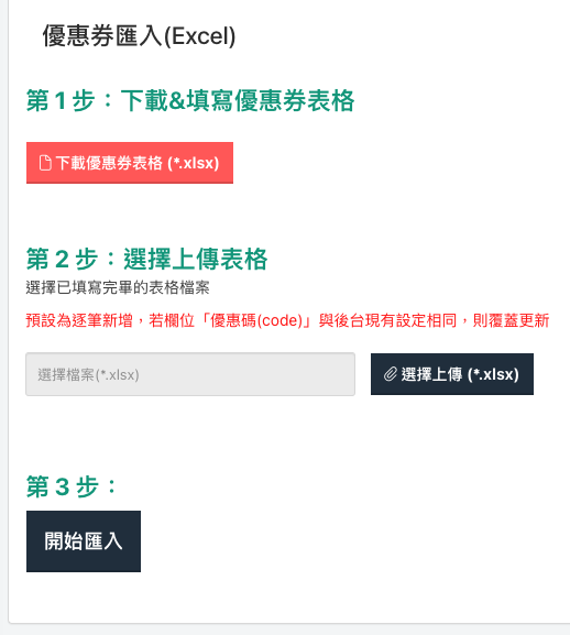 三、「優惠券」也可以批次匯入