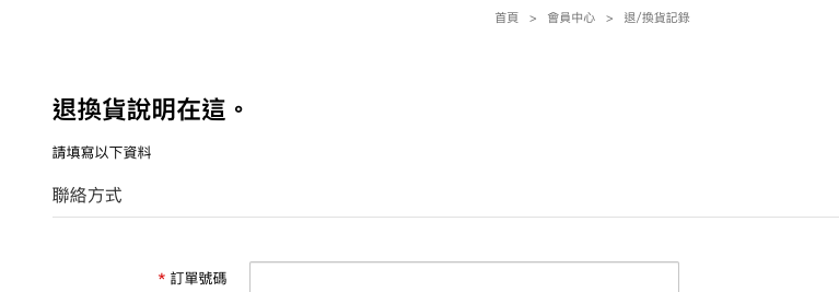 ☞ 消費者從前台提出「退換貨申請」,前台路徑:會員中心 > 訂購紀錄 > 訂單細節 > 退換貨。