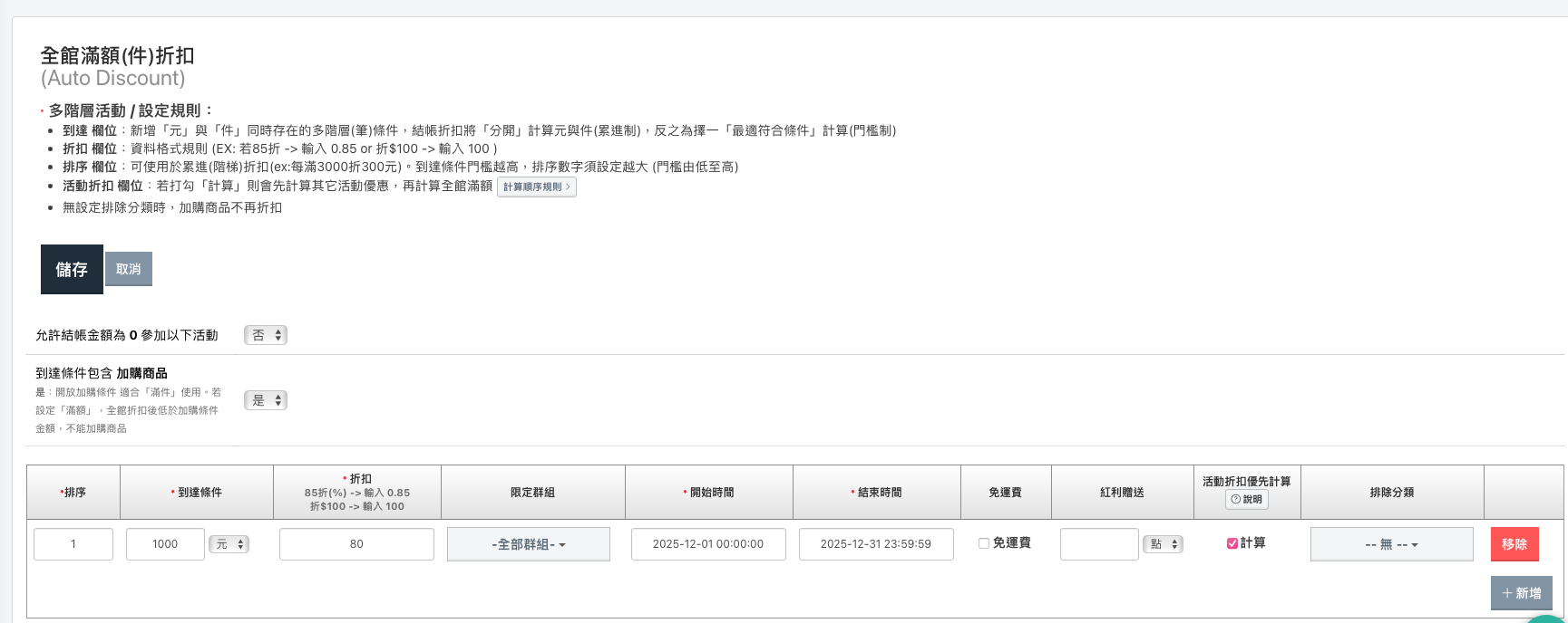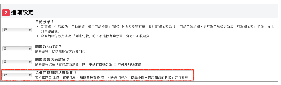 *若折扣來自全館、促銷活動、加購會員資格 時,則免運門檻以「商品小計-適用商品的折扣」進行計算