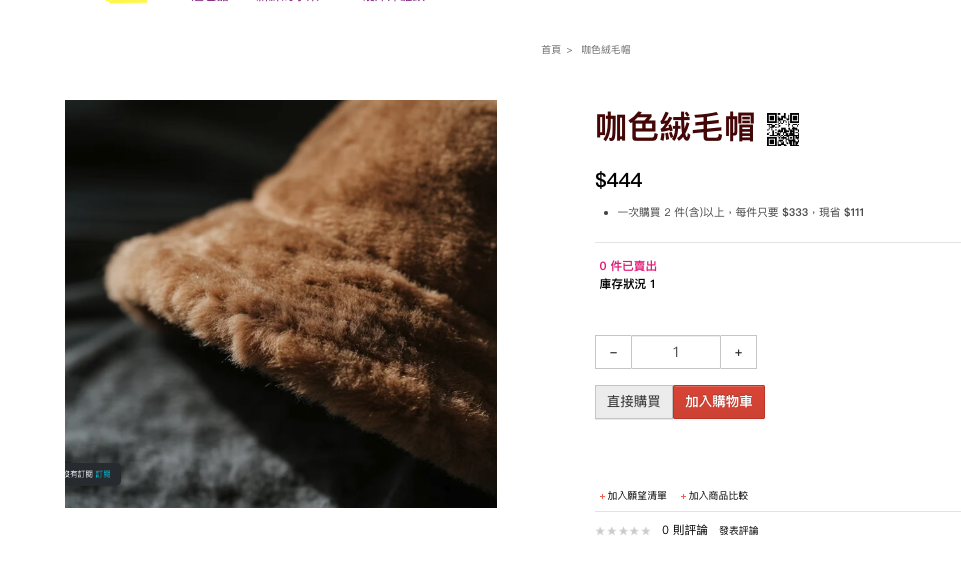 ▪ 前台 「咖色絨毛帽」商品頁,會顯示為: