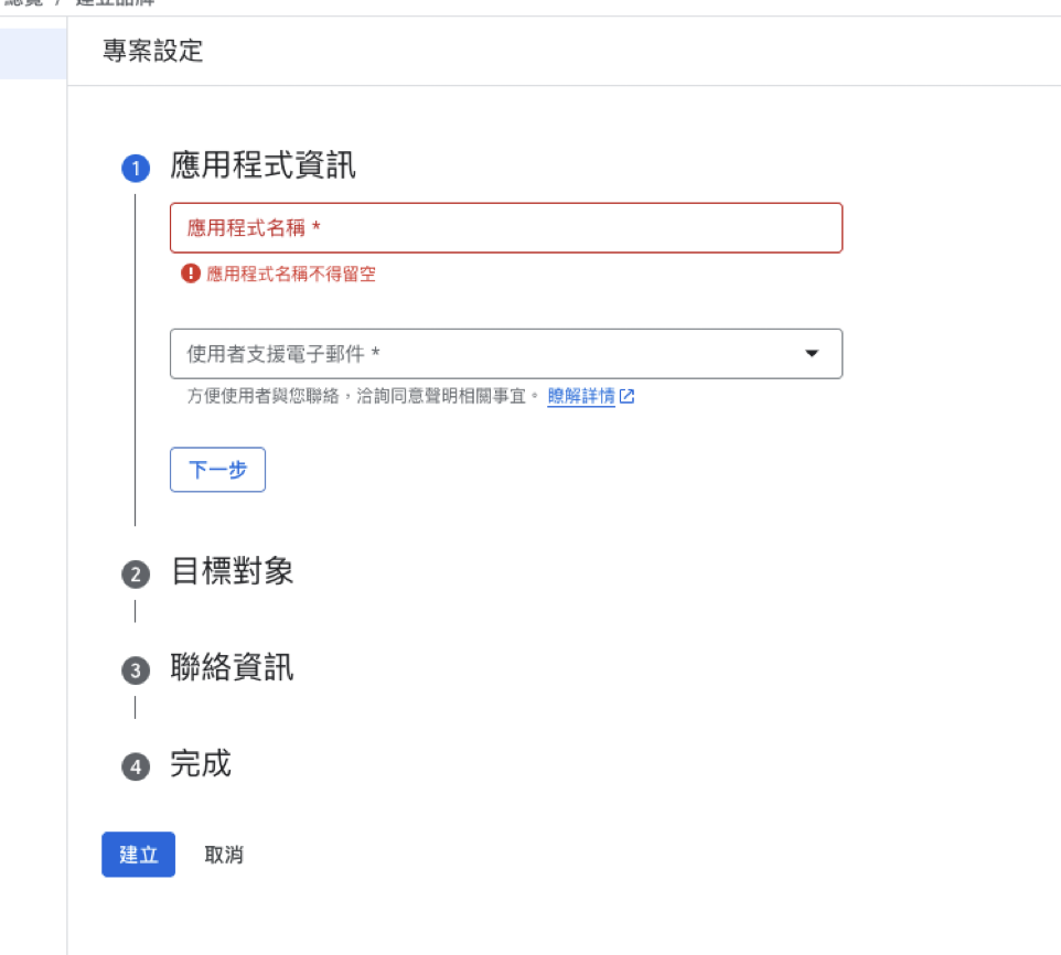 STEP2. 點擊開始,填入以下資訊後,點擊建立。
