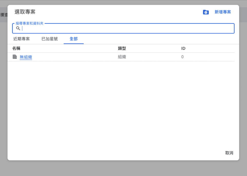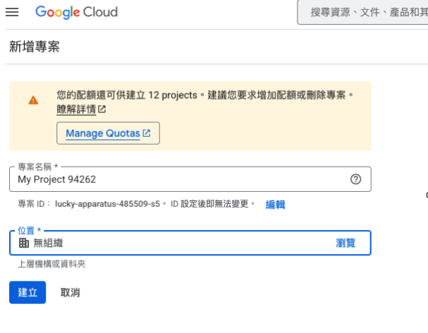 STEP5.填入專案名稱及位置(無組織可忽略),後點擊建立。