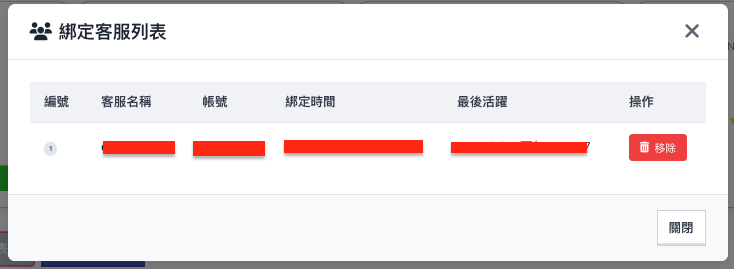 - 點擊按鈕後,換顯示「綁定客服列表」,可以查看子綁定的客服