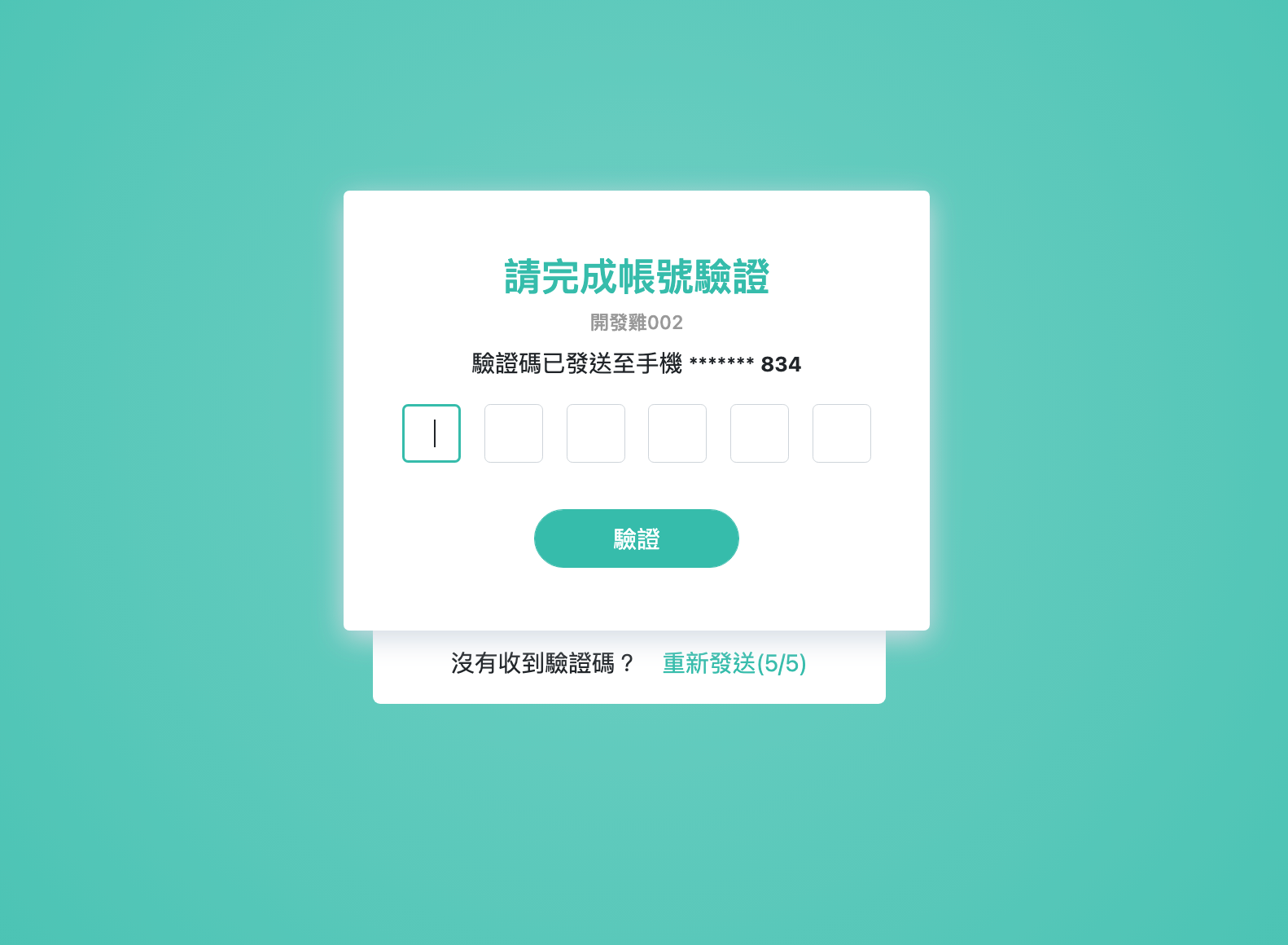 會員登入後,或者在會員中心更新手機號碼,會立刻進入以下的驗證畫面:
