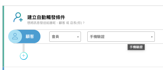STEP1. 設定「觸發條件」為:顧客、會員、手機驗證。